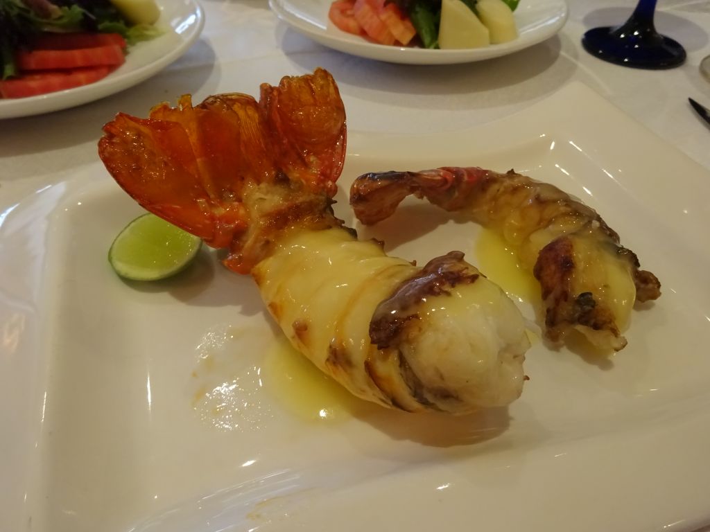 Empieza mi jornada con una cola de langosta a la parrilla. Acá no hay ciencia, la cocción del crustáceo no admite puntos medios, tiene que ser perfecta. Un toque de mantequilla y limón redondea la experiencia. Es un manjar que debe reservarse para ocasiones especiales y la acompañan de una ensalada fresca con aceite de oliva madurado y vinagreta de la casa. Un lujo.
